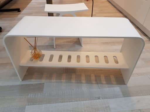 ספסל קוריאן גוון לבן בתוספת מדף רשת תחתון